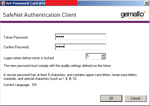 Token PIN (User Password): Τέσσερις φορές το εννέα 9999 (μετά από 3 ανεπιτυχείς προσπάθειες κλειδώνει).