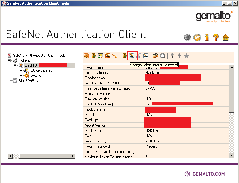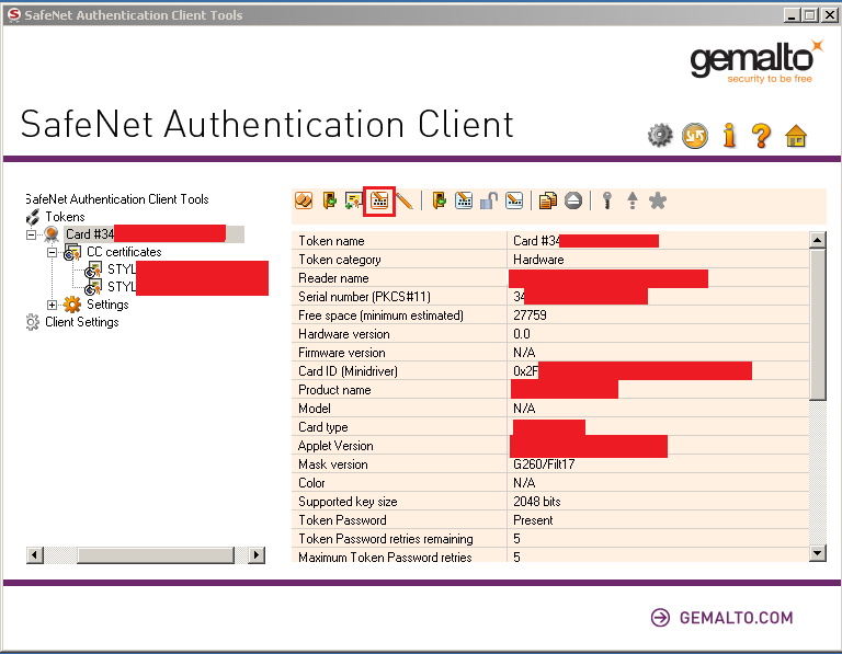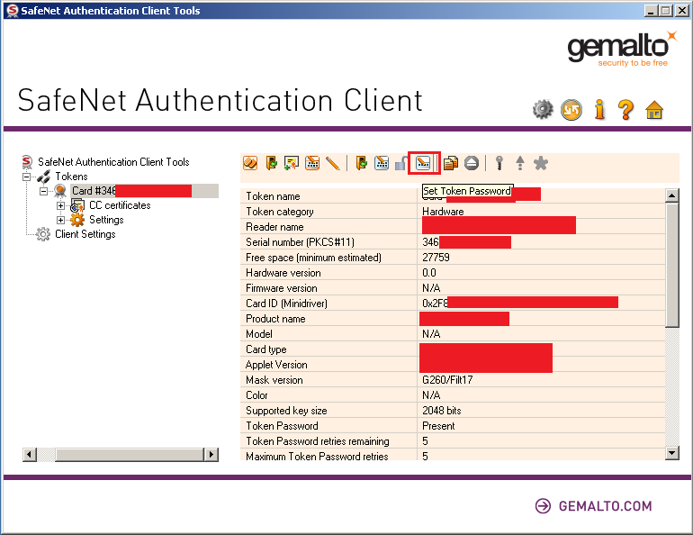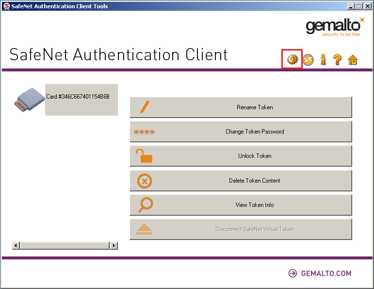 Από την εφαρμογή SafeNet Authentication Client επιλέγουμε το γρανάζι.