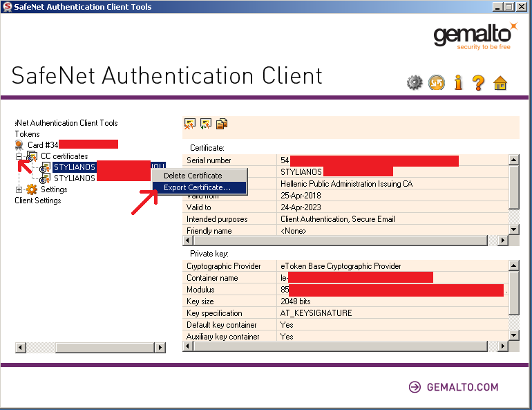 Ακολουθούμε την ίδια διαδικασία για την εξαγωγή και του δεύτερου πιστοποιητικού.