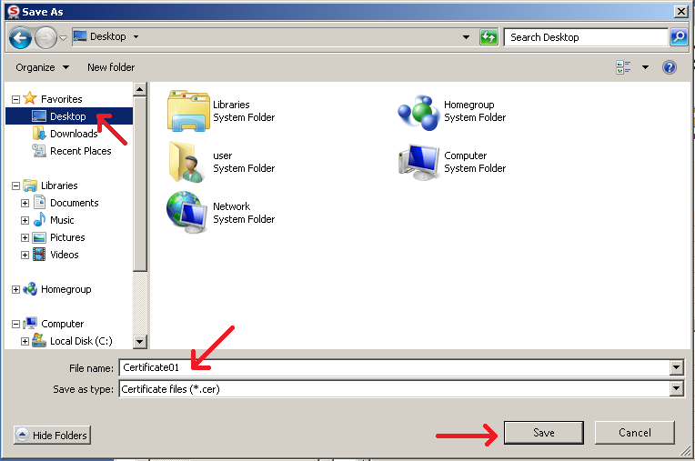 Αυτή η διαδικασία θα δημιουργήσει ένα αρχείο cer στο φάκελο που επιλέξαμε για την αποθήκευση.