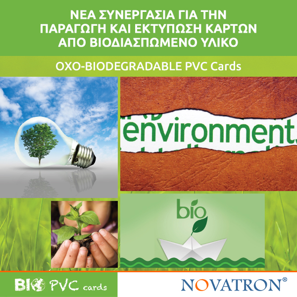 Για περισσότερες πληροφορίες σχετικά με τη δυνατότητα εκτύπωσης πλαστικών καρτών από Βιοδιασπώμενο Υλικό, επικοινωνήστε με το εξειδικευμένο τμήμα της Novatron: