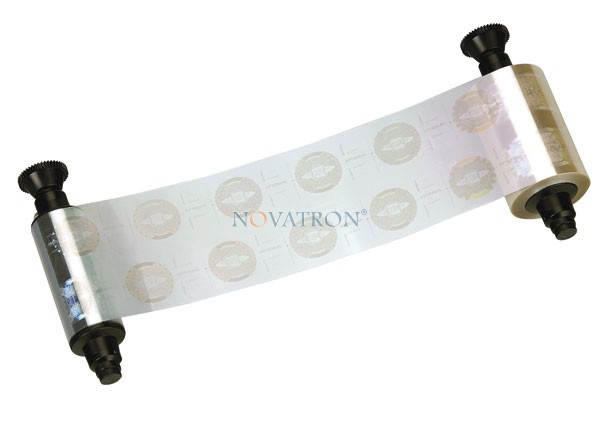 This ribbon allows the application of hologram (an optical variable design) on card in a form of a transparent layer.